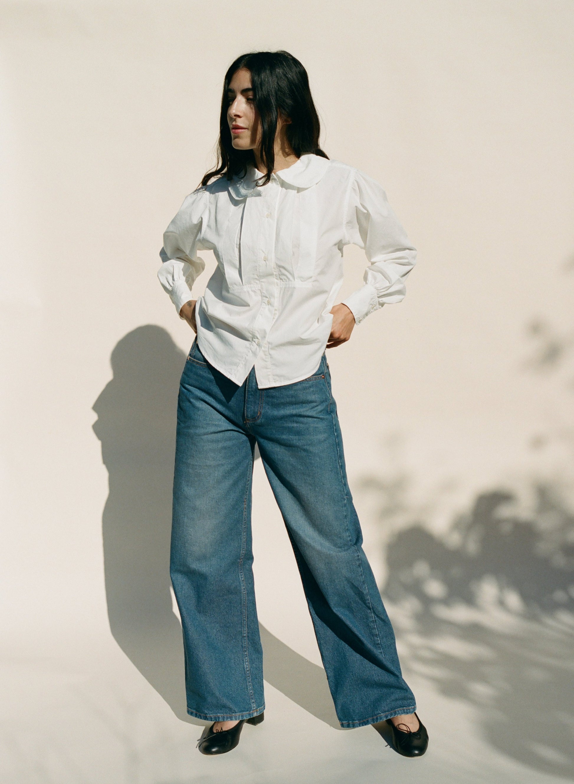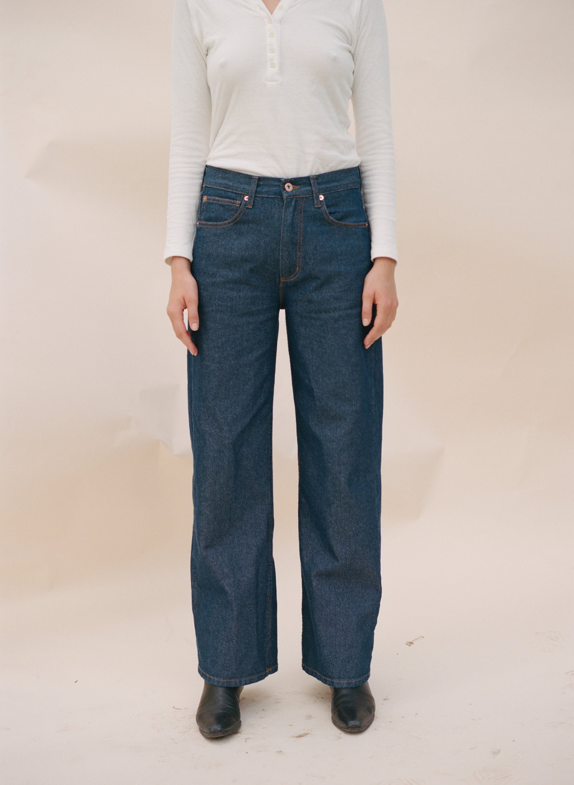 The Austin Pant is a stylish mid-rise jean with a fitted hip and seat that elegantly flares into a wide leg. Ideal for both casual wear and dressing up. Features durable a Copper shank button, Zipper fly, and matching rivets for added security.