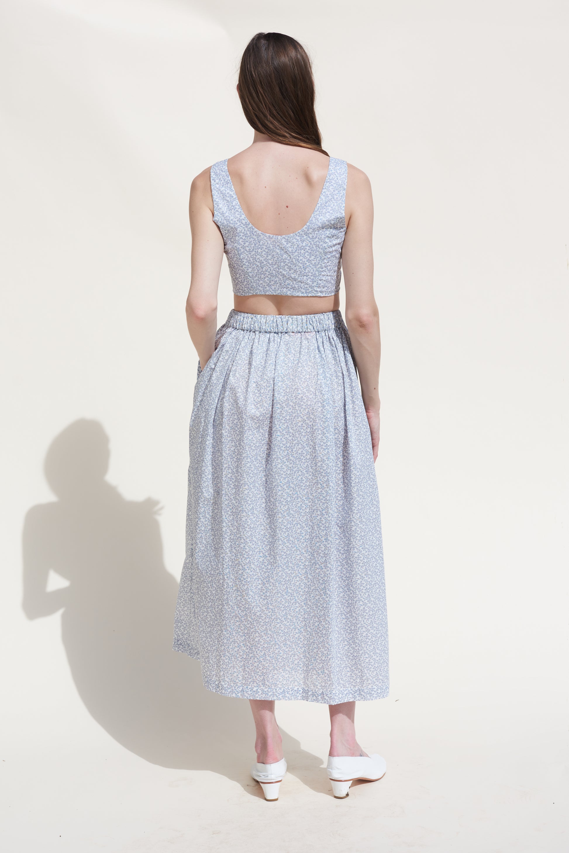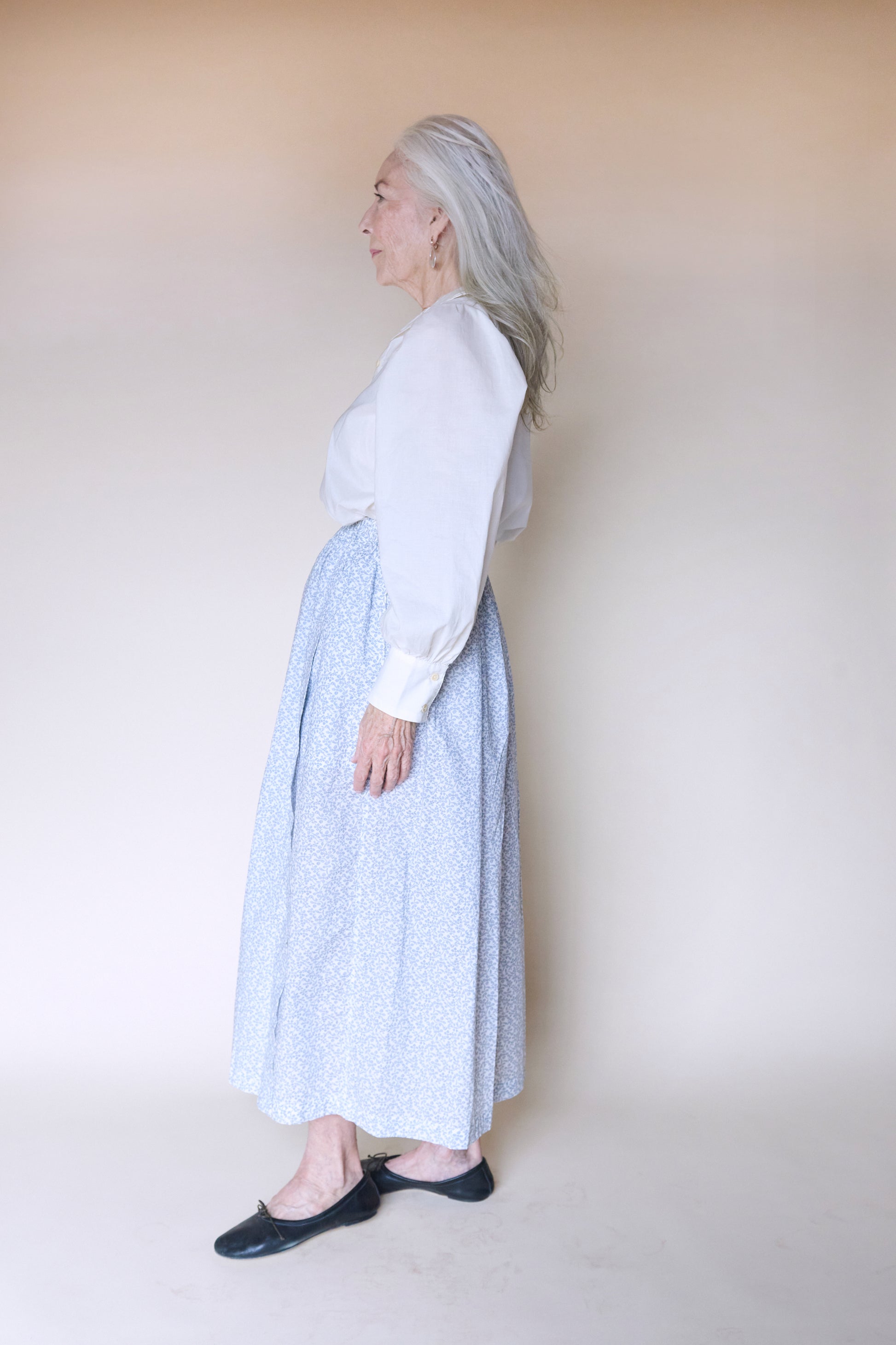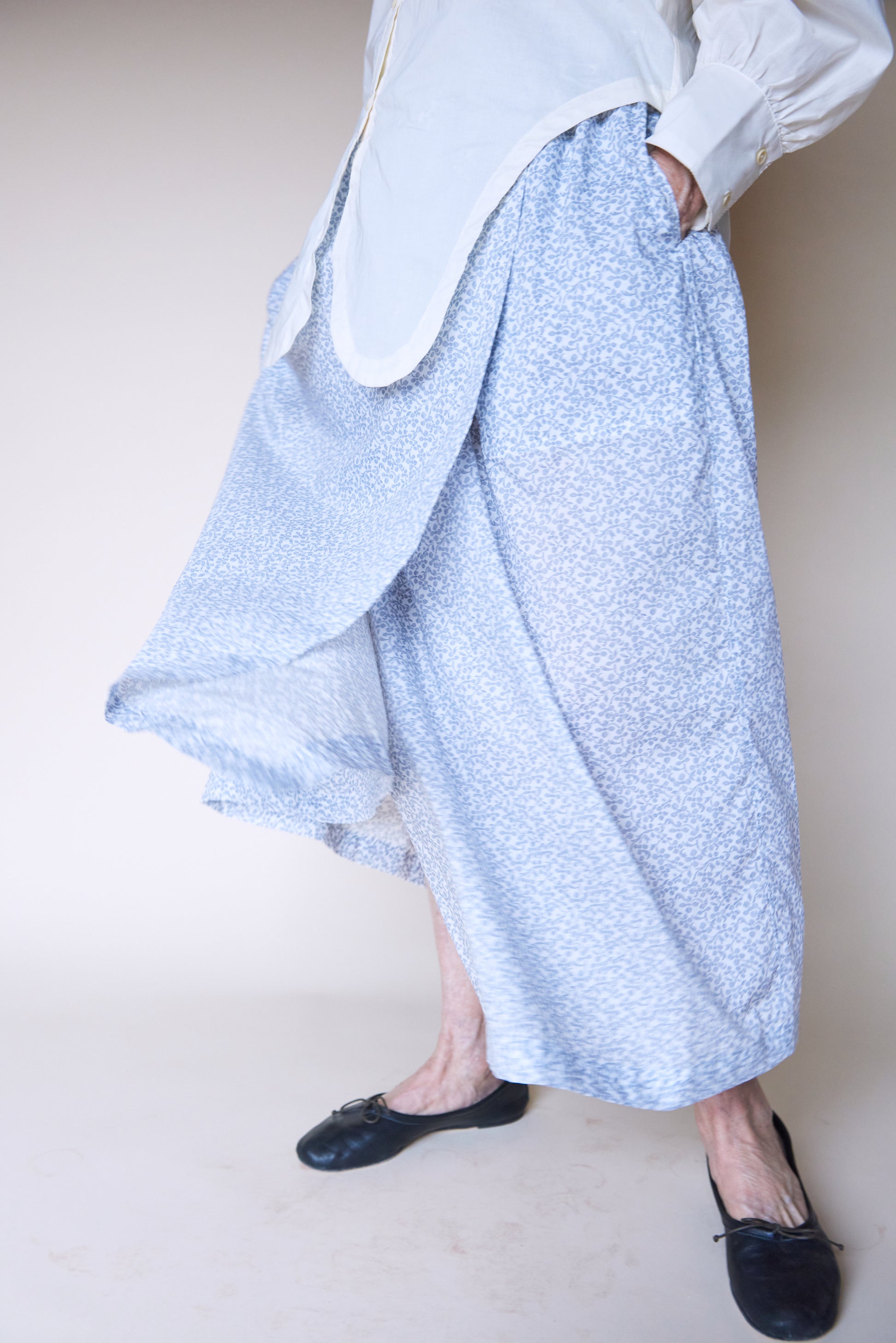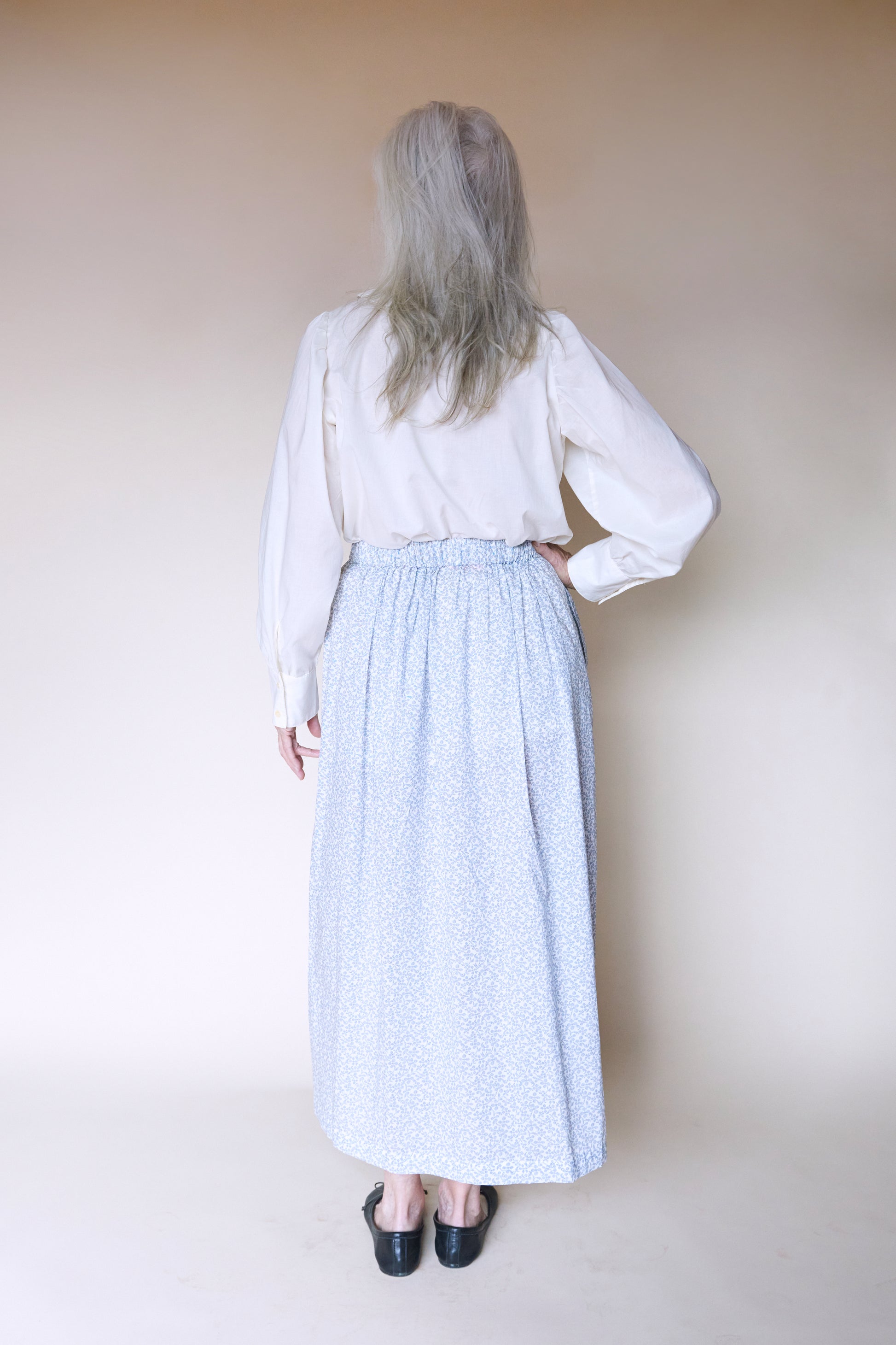 The Evan Maxi Skirt is constructed in classic Liberty of London Tana Lawn Cotton. Lino Floral looks like an etched floral design in calming grey. With elasticated waist band for ease and a wrapping front detail this is the ultimate skirt for warmer days ahead. The 2 large pockets are perfect for stashing phones and keys, or collecting rocks and shells.
