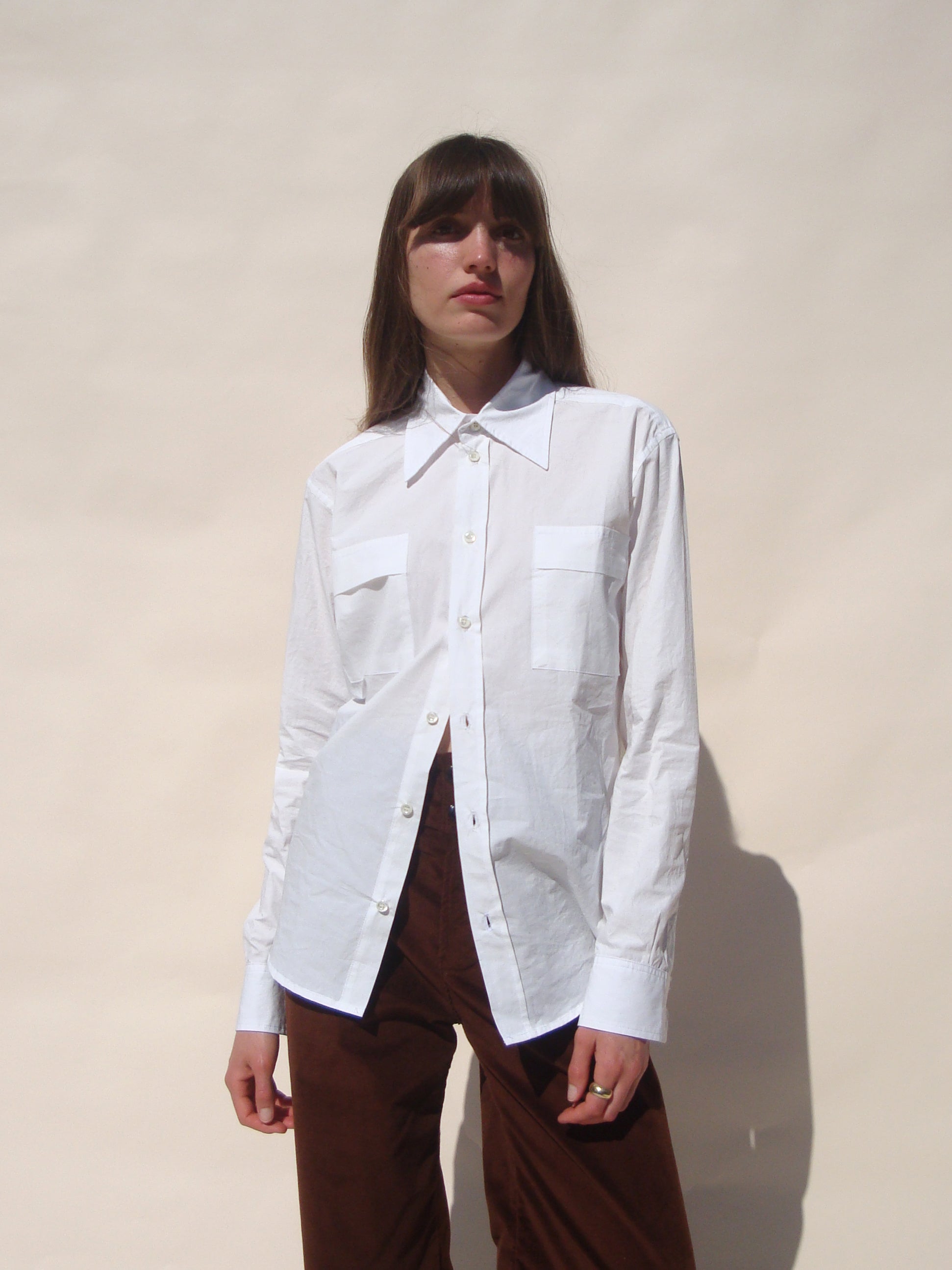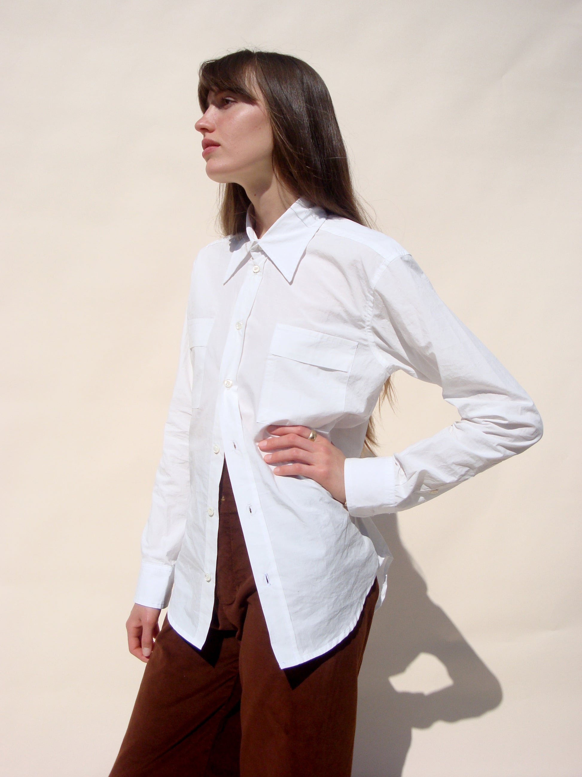 This Court Button Down Shirt features a close-fitting silhouette for a tailored look. Designed with two chest pockets and a distinctive pointed collar inspired by the 1970s. Flat Fell seams throughout.