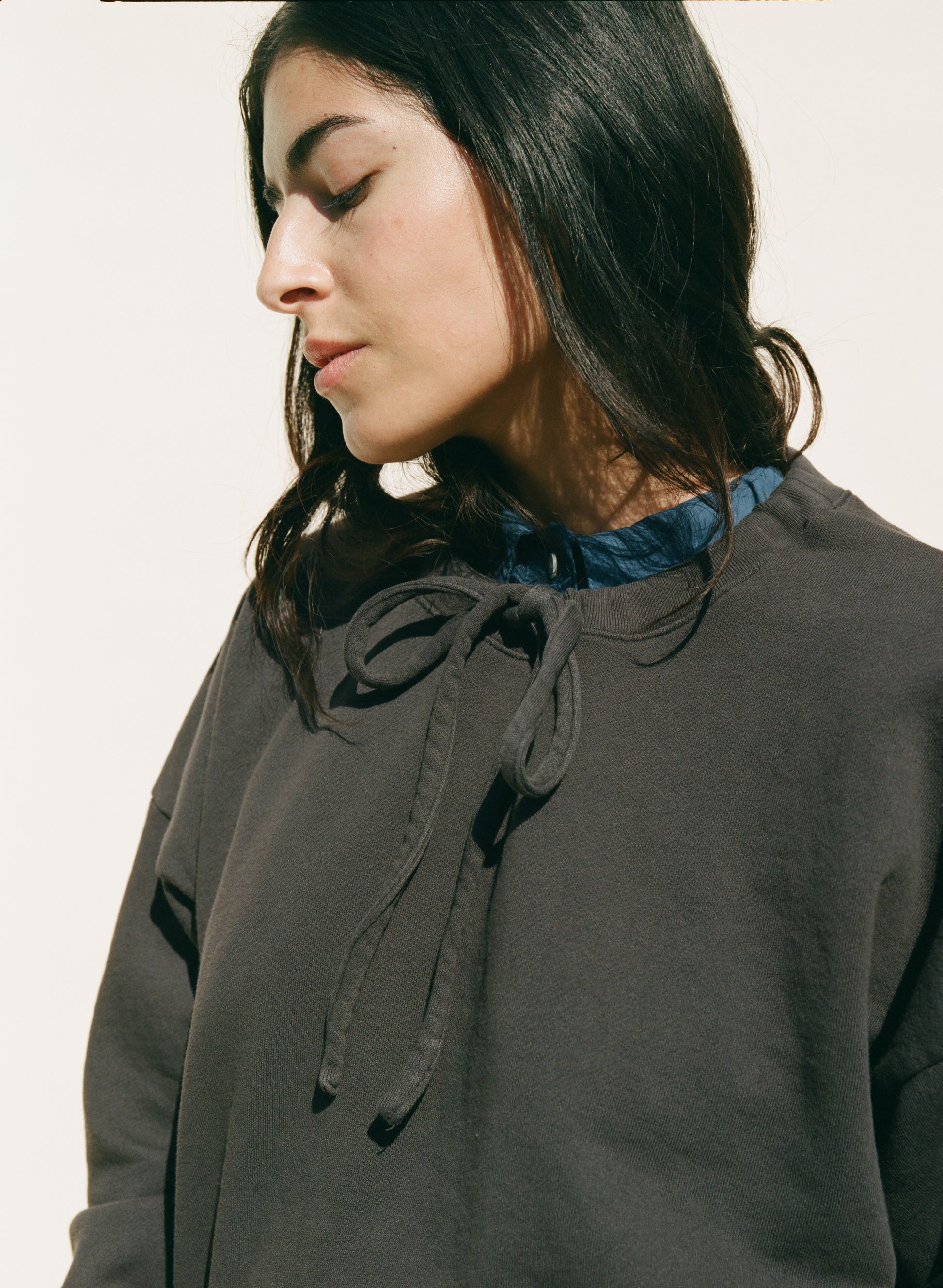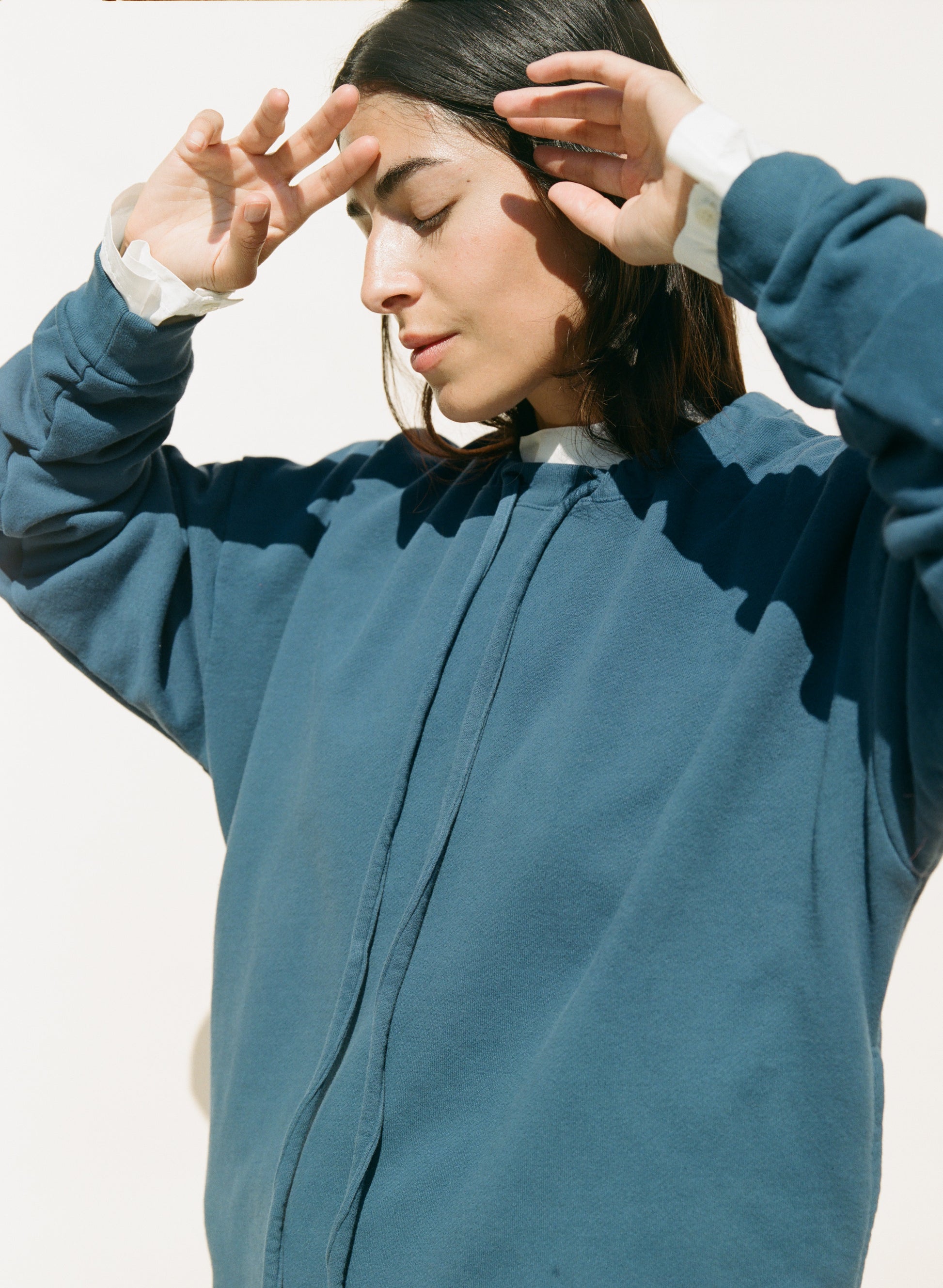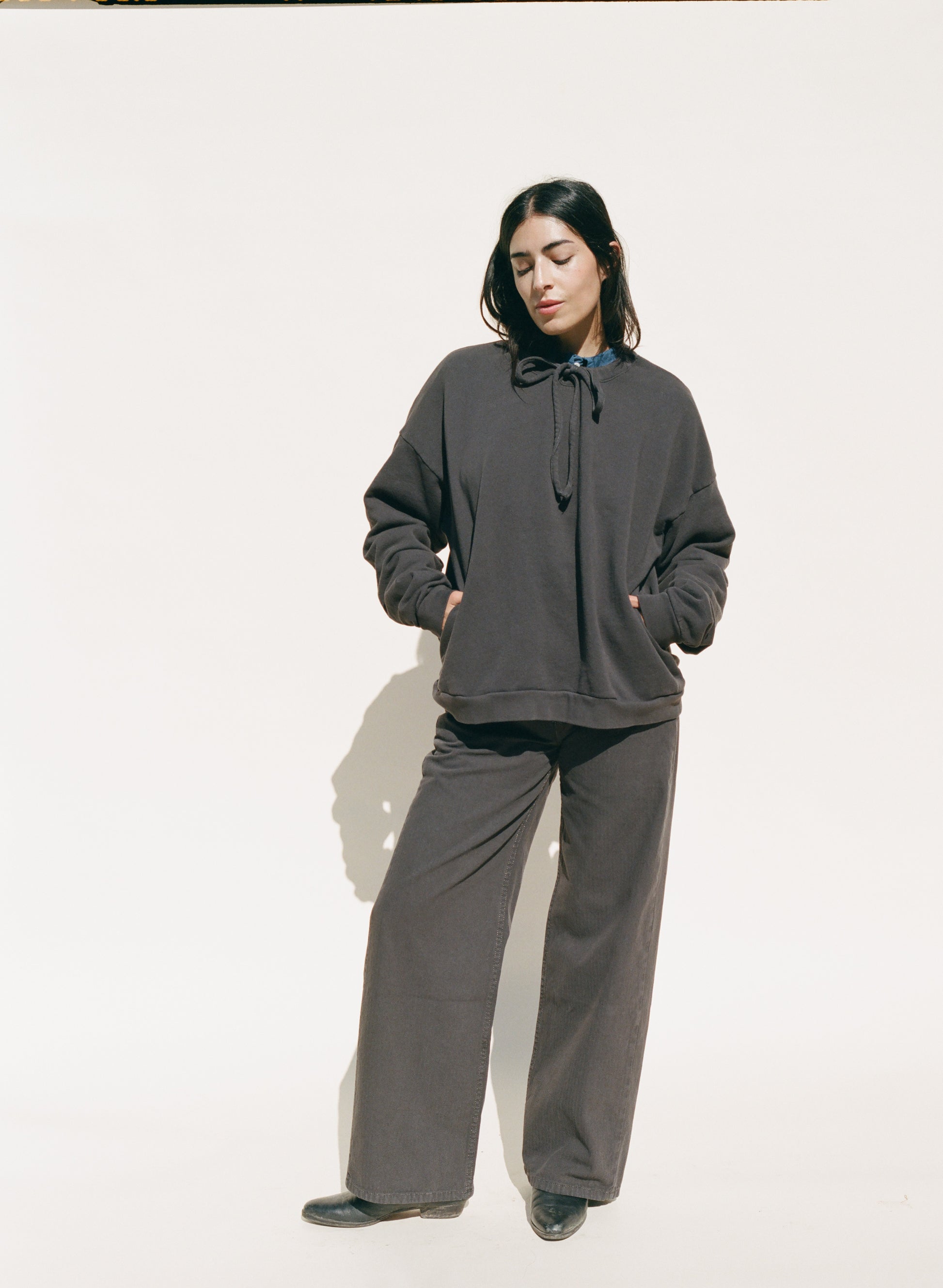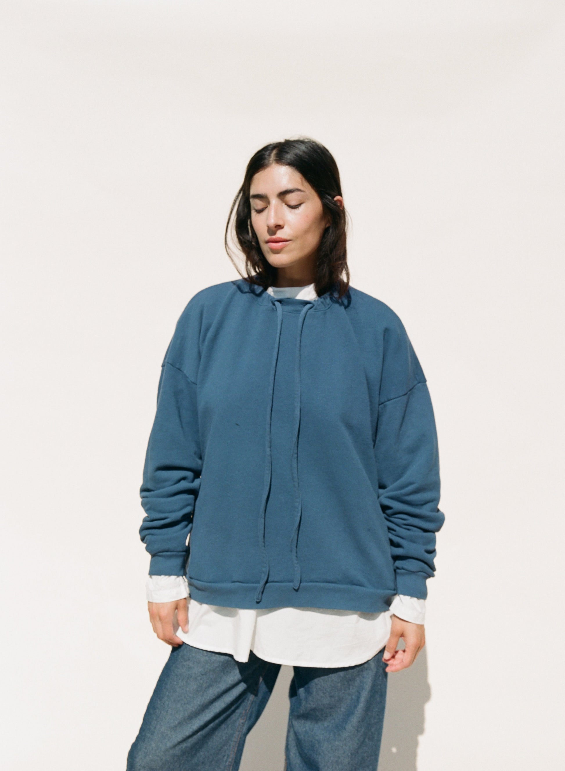 This sweatshirt is made in Los Angeles and features an easy fit with side seam pockets. It has a ribbed hem and cuffs, plus a drawcord at the neck for adjusting and gathering. Crafted from a soft organic cotton french terry and garment dyed.