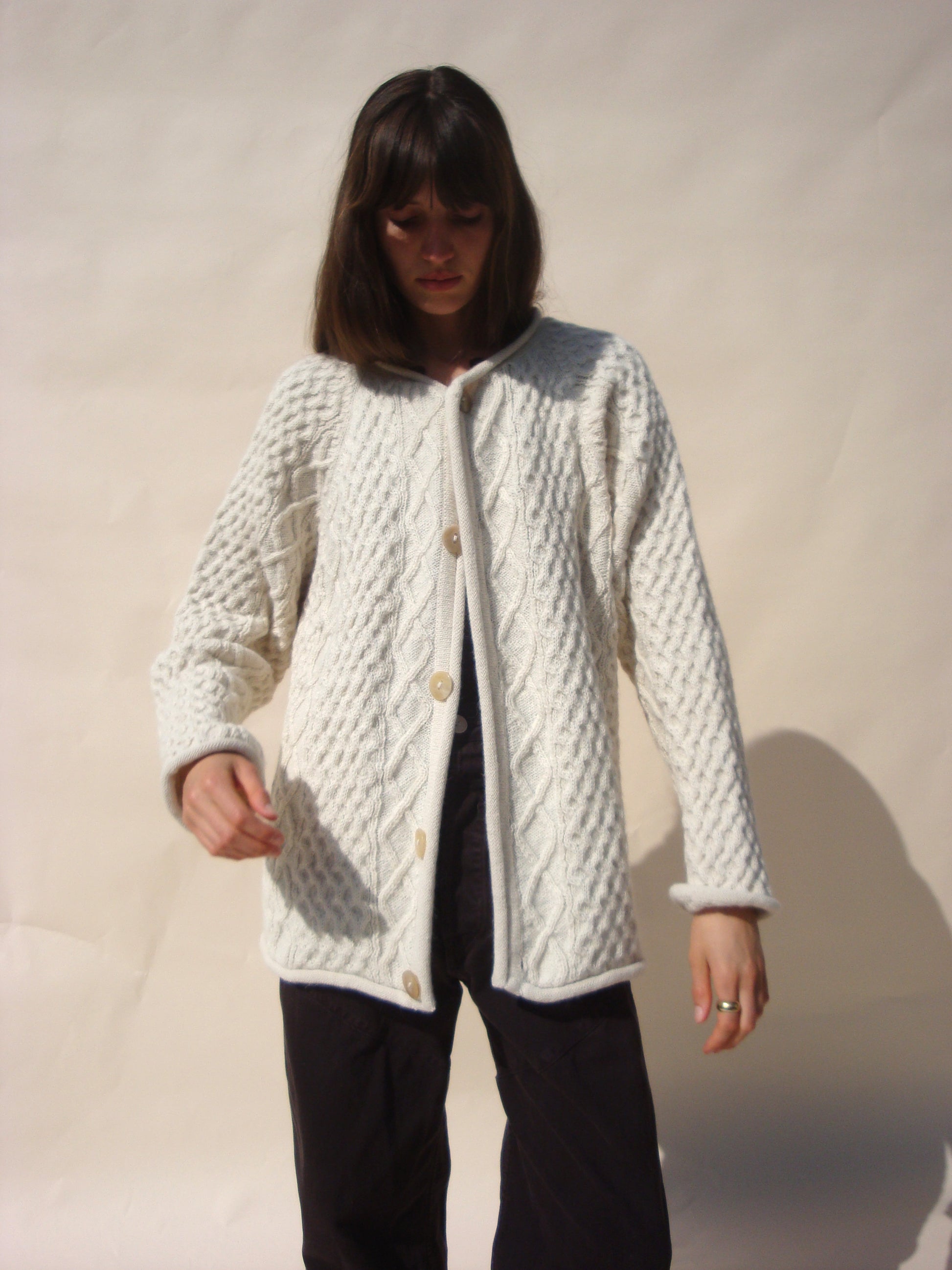 Wrap yourself in the gentle embrace of the Gardeners Cable Cardigan. Knit from the softest alpaca and merino yarns, its chunky cables tell a story of warmth and timeless craft. Oversized and adorned with rustic horn buttons, this cardigan invites you to slow down.