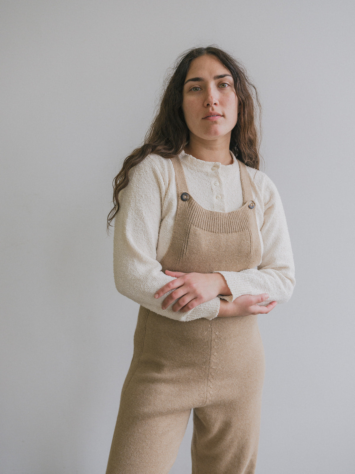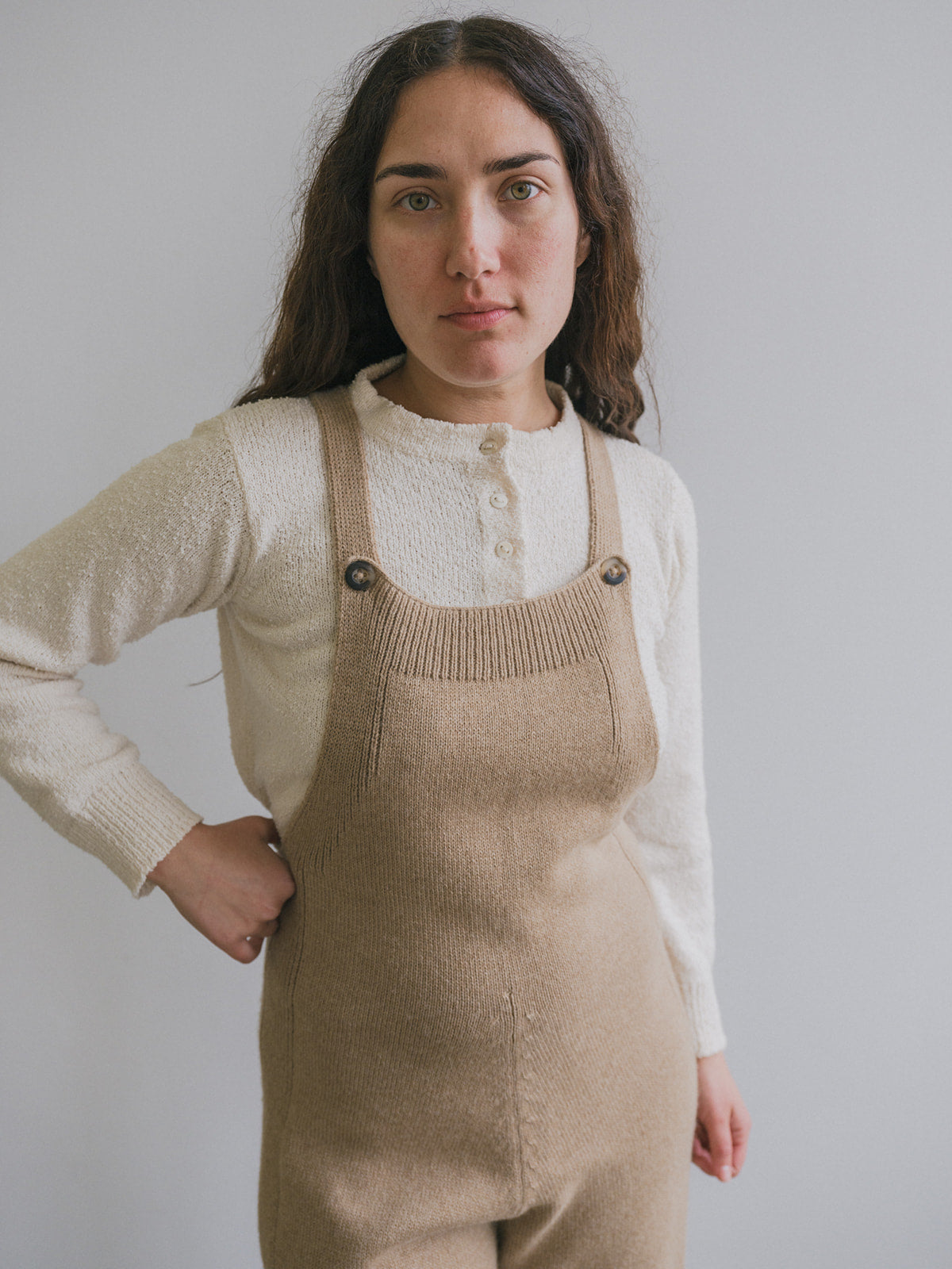 Crafted from an alpaca and merino wool yarn, the Nadi Knit Overall features rib detailing down the leg and center back and 6 horn buttons. Knit in Peru with strap length adjustability for many heights, this is a piece to be worn often and layered to your liking. I love it with one of our henley sweaters underneath