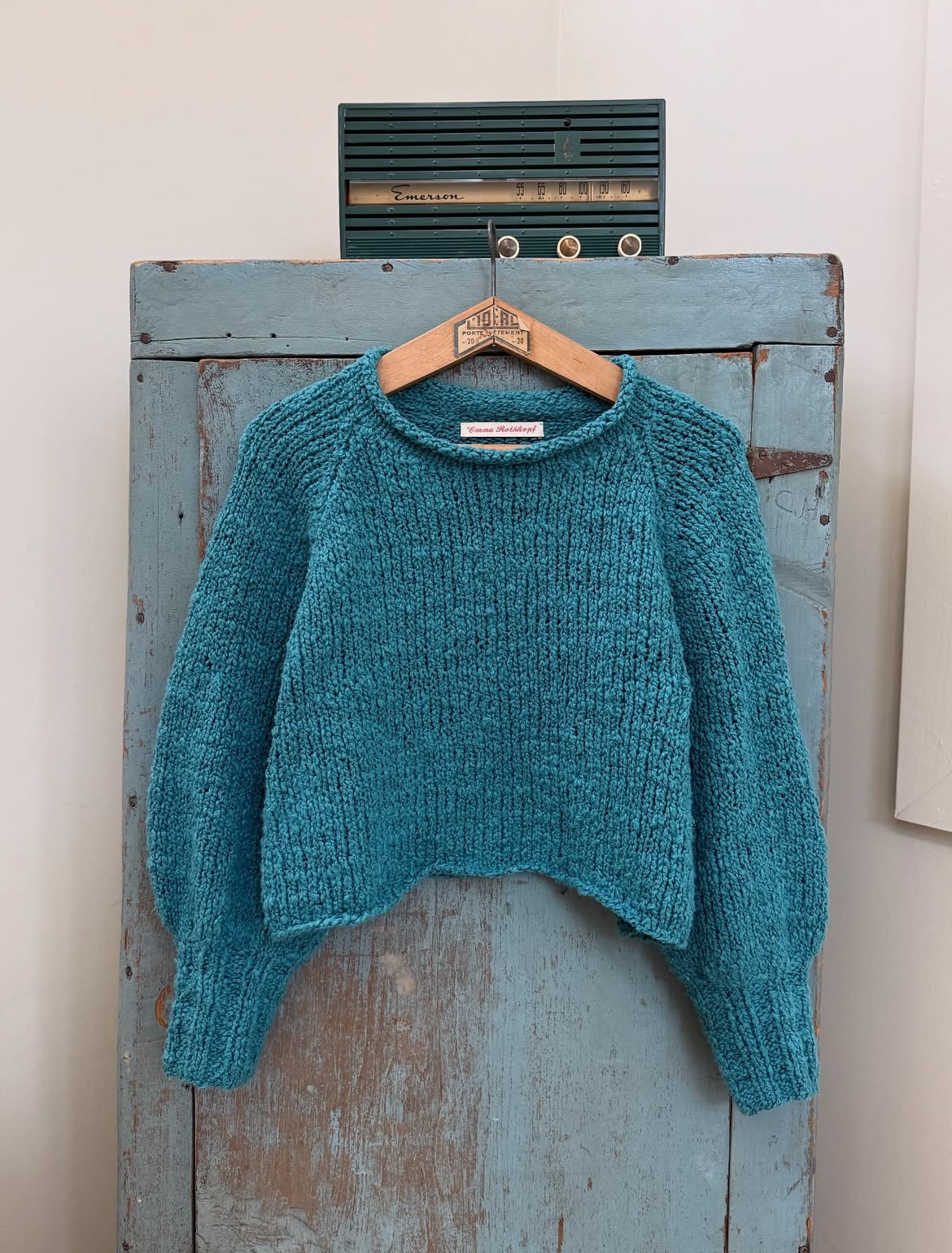 The Nogu Handknit Pullover is crafted from soft, deadstock cotton, this style is both comfortable and zero waste. The slubby yarn adds texture and interest to any outfit. while the boxy fit, slight crop, and ribbed cuffs make it a versatile layering piece.