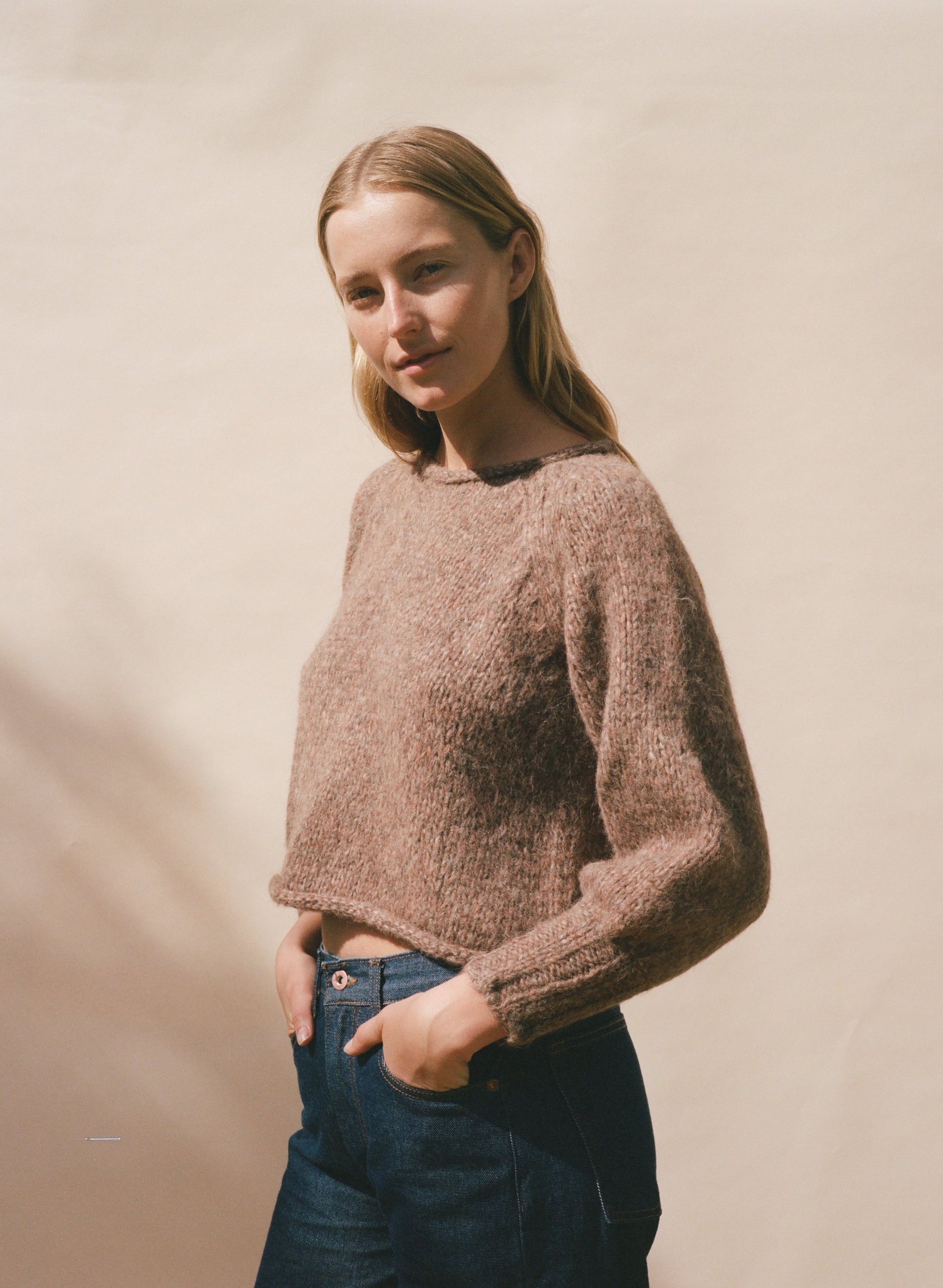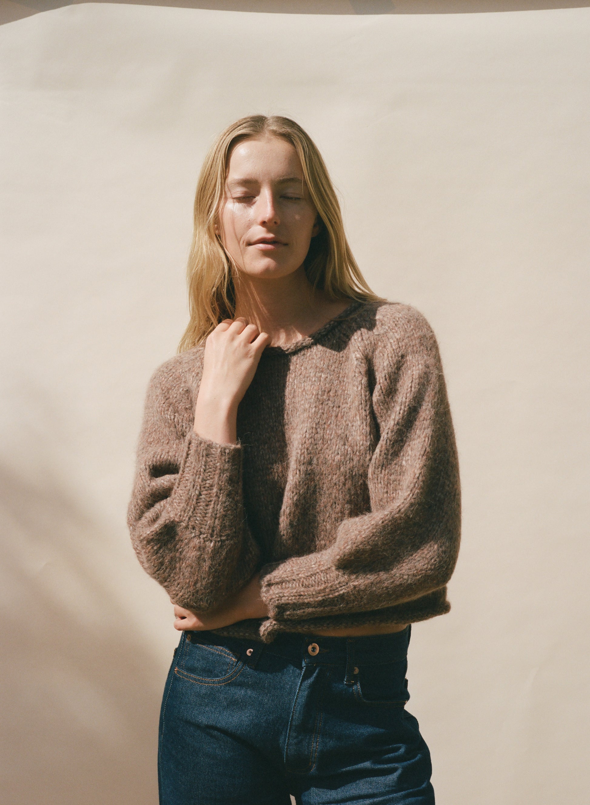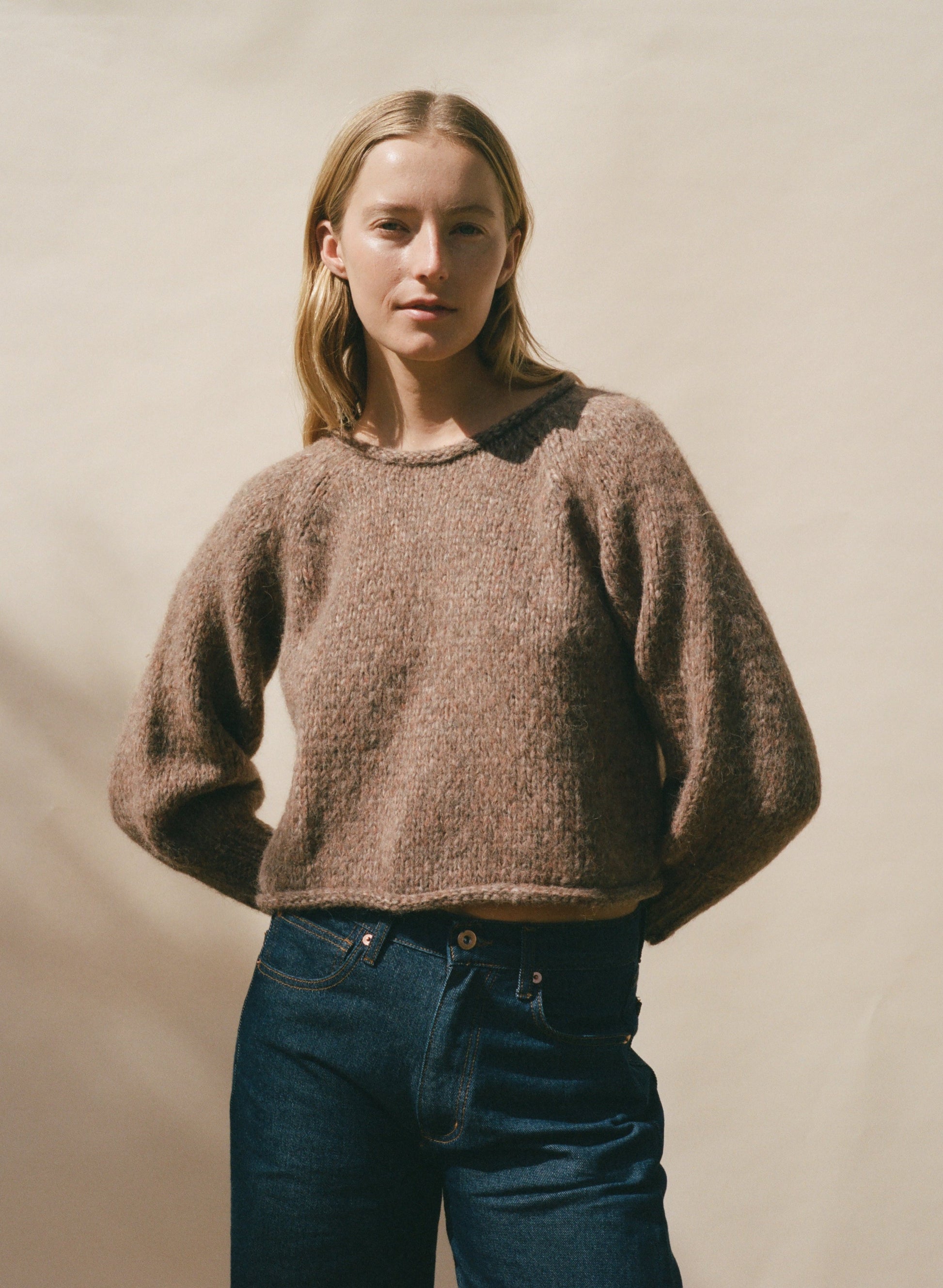 The Nogu Pullover in Luxe Alpa Wool is made from luxurious deadstock baby alpaca, merino wool, and pima cotton yarn. The soft, textured yarn adds depth and character, while the slightly cropped, boxy fit and roll neck with ribbed cuffs make it a versatile layering piece.