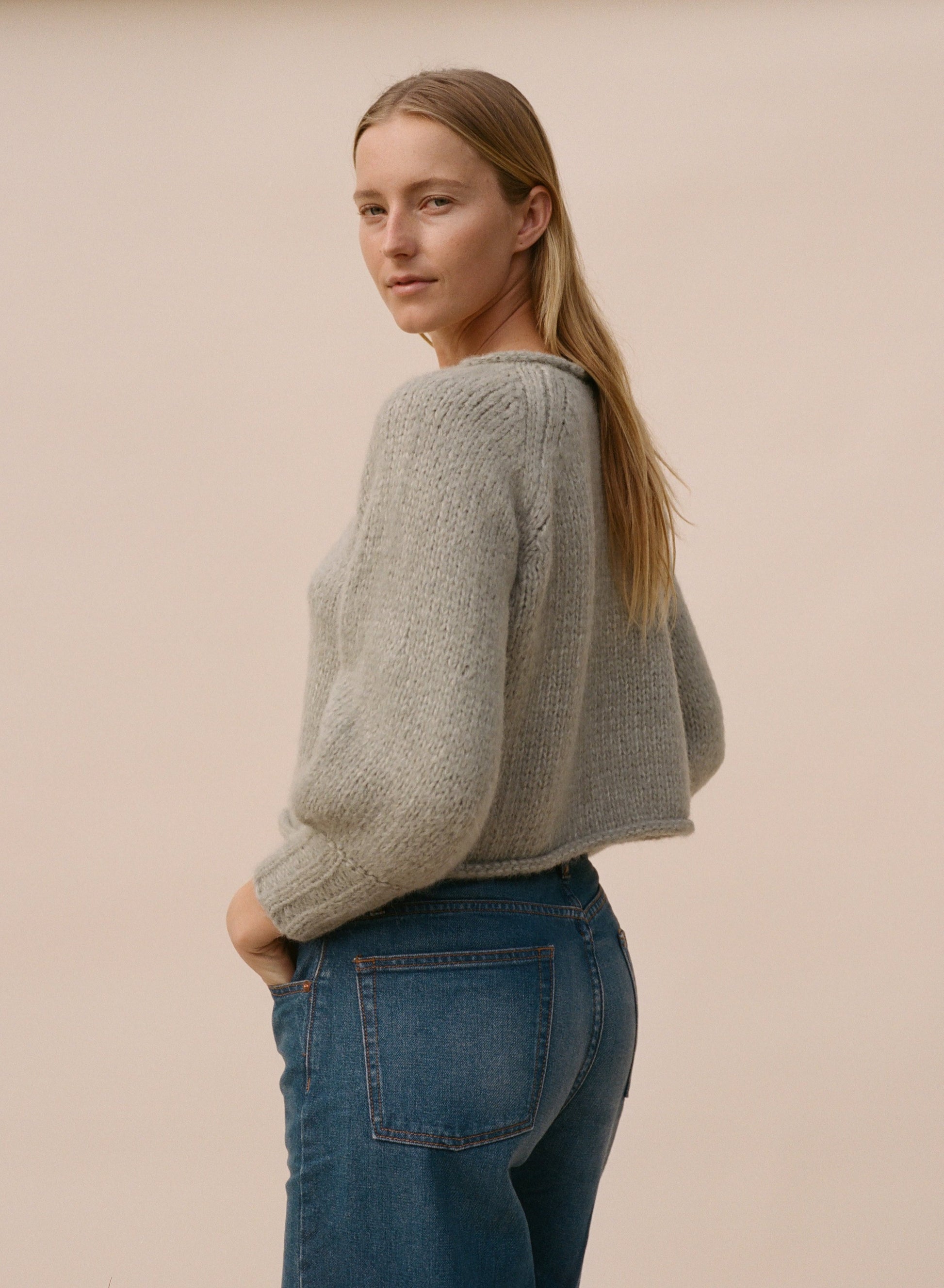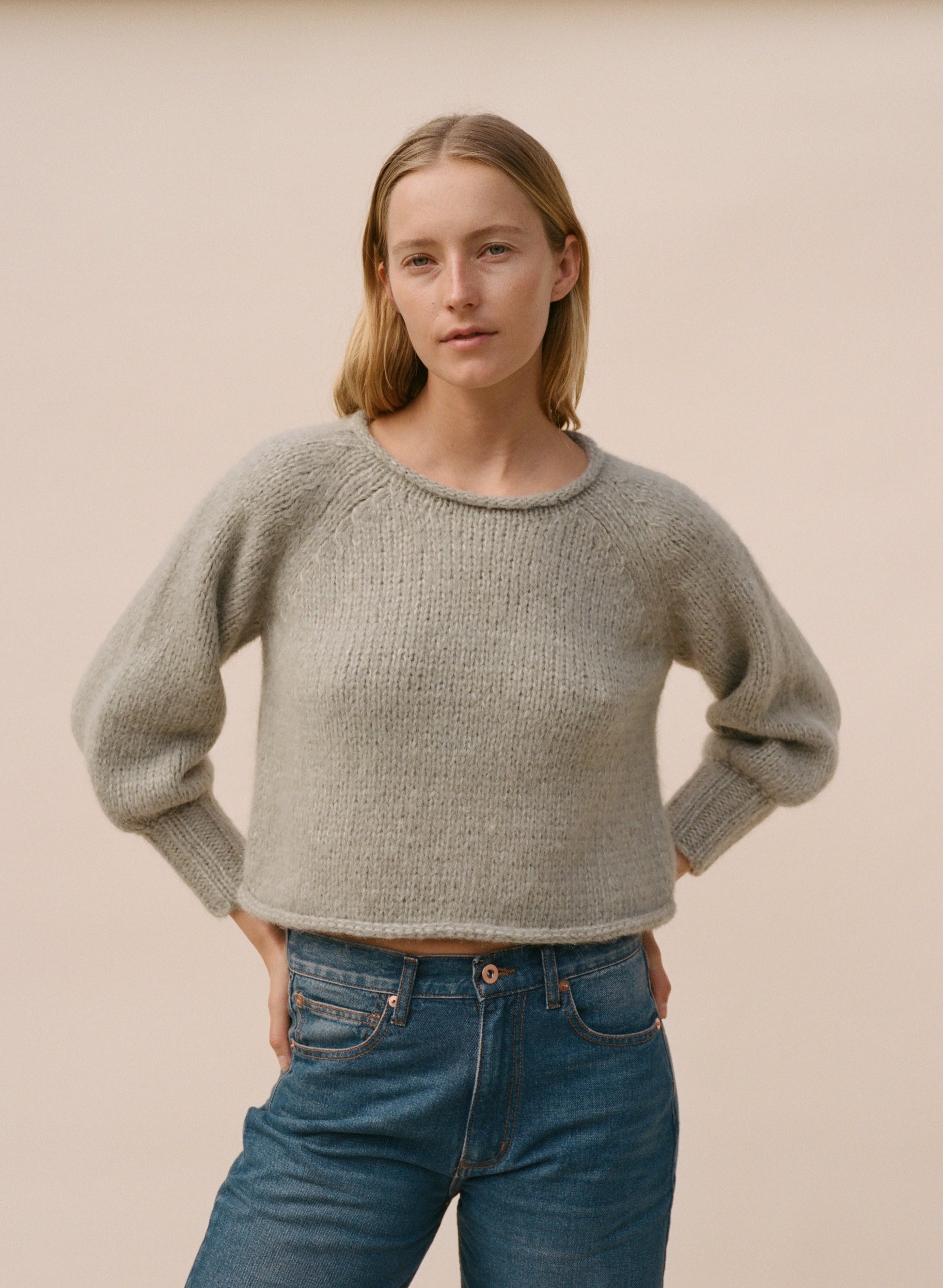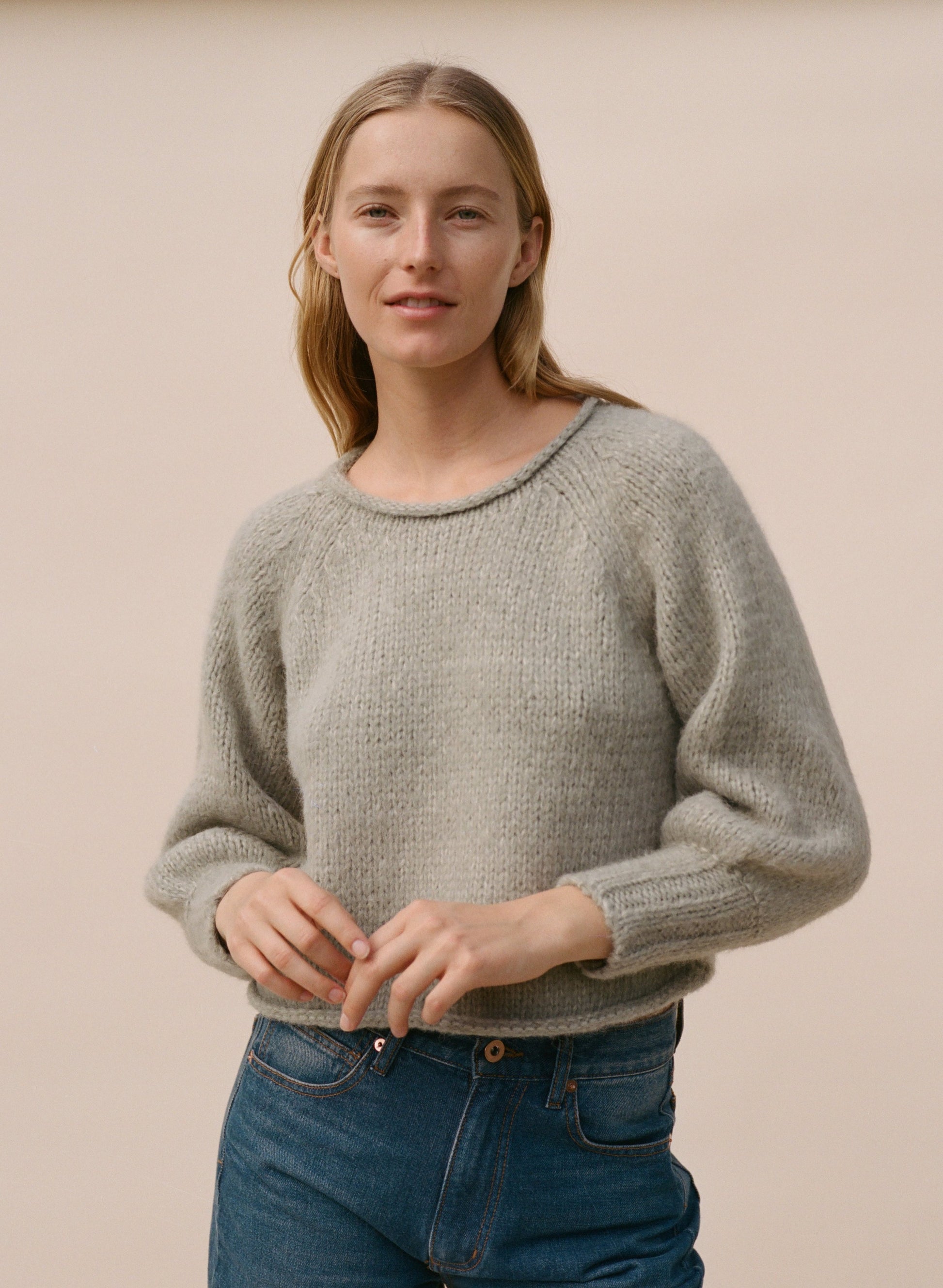The Nogu Pullover in Luxe Alpa Wool is made from luxurious deadstock baby alpaca, merino wool, and pima cotton yarn. The soft, textured yarn adds depth and character, while the slightly cropped, boxy fit and roll neck with ribbed cuffs make it a versatile layering piece.