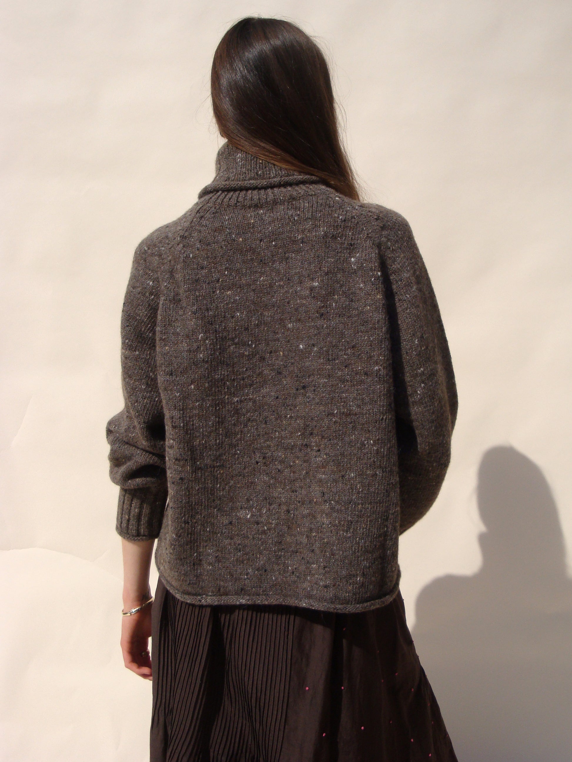 The Noor Turtleneck features a blend of flecked alpaca and merino wool yarn, creating a delicate tweed texture with a beautifully rich, special color. Designed with a roll neck and hem, it offers an easy, relaxed body for comfortable layering and a refined look.
