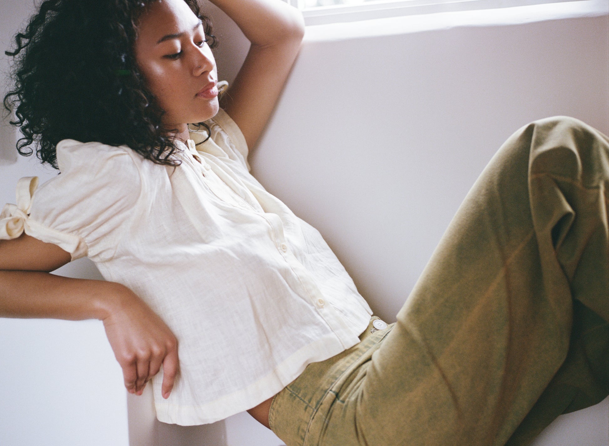 In 100% Organic Cotton Canvas with a subtle acid wash, the Picnic Pant is tried and true. Brought back from the original ER collection in a range of solids, to be worn every day, all year long. Featuring a high waistband with 2 exposed corozo buttons, a hidden button fly, and no side seams. Drawing inspiration from Navy sailor pants, this style looks great with a tucked in blouse, tee, cropped shirt.