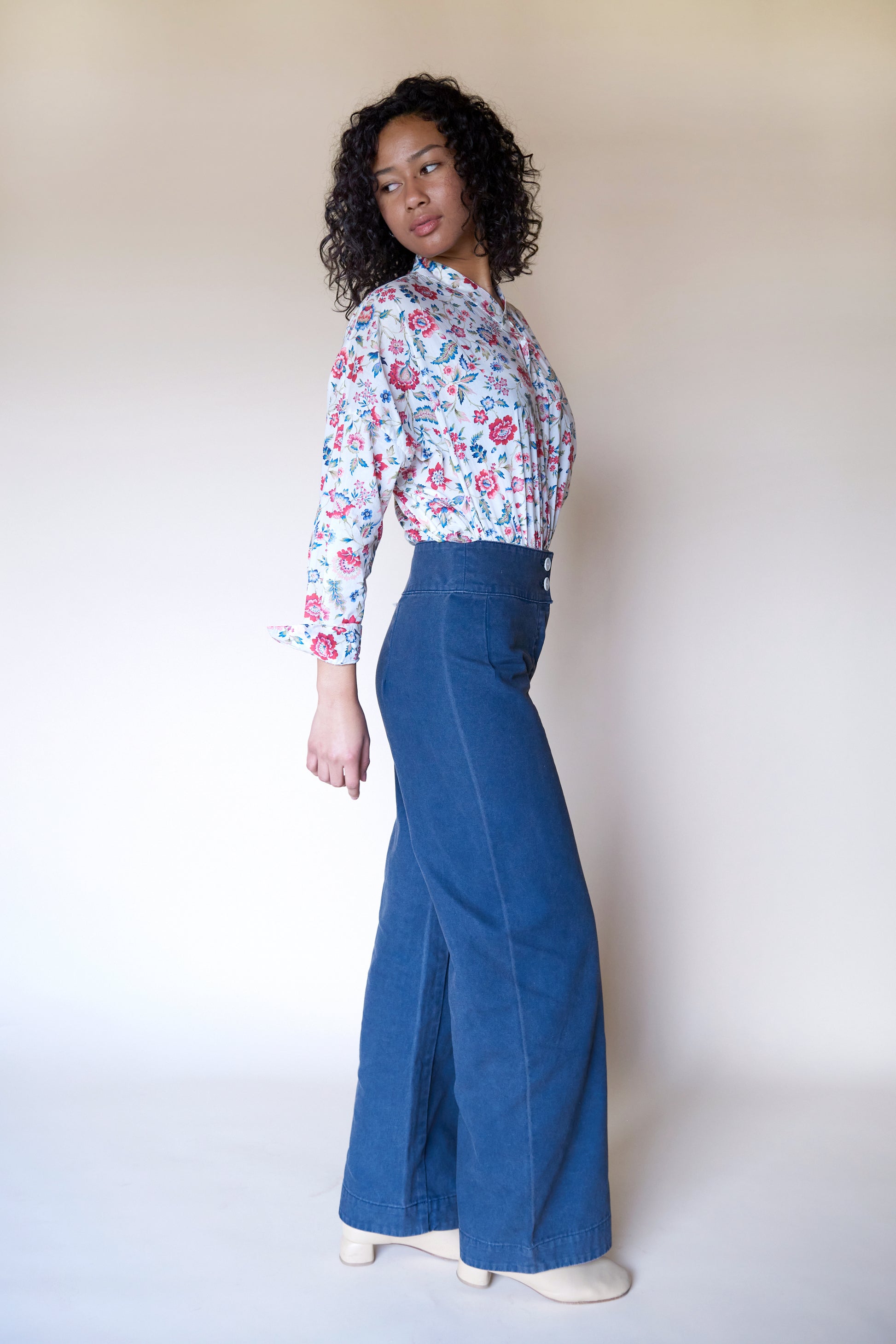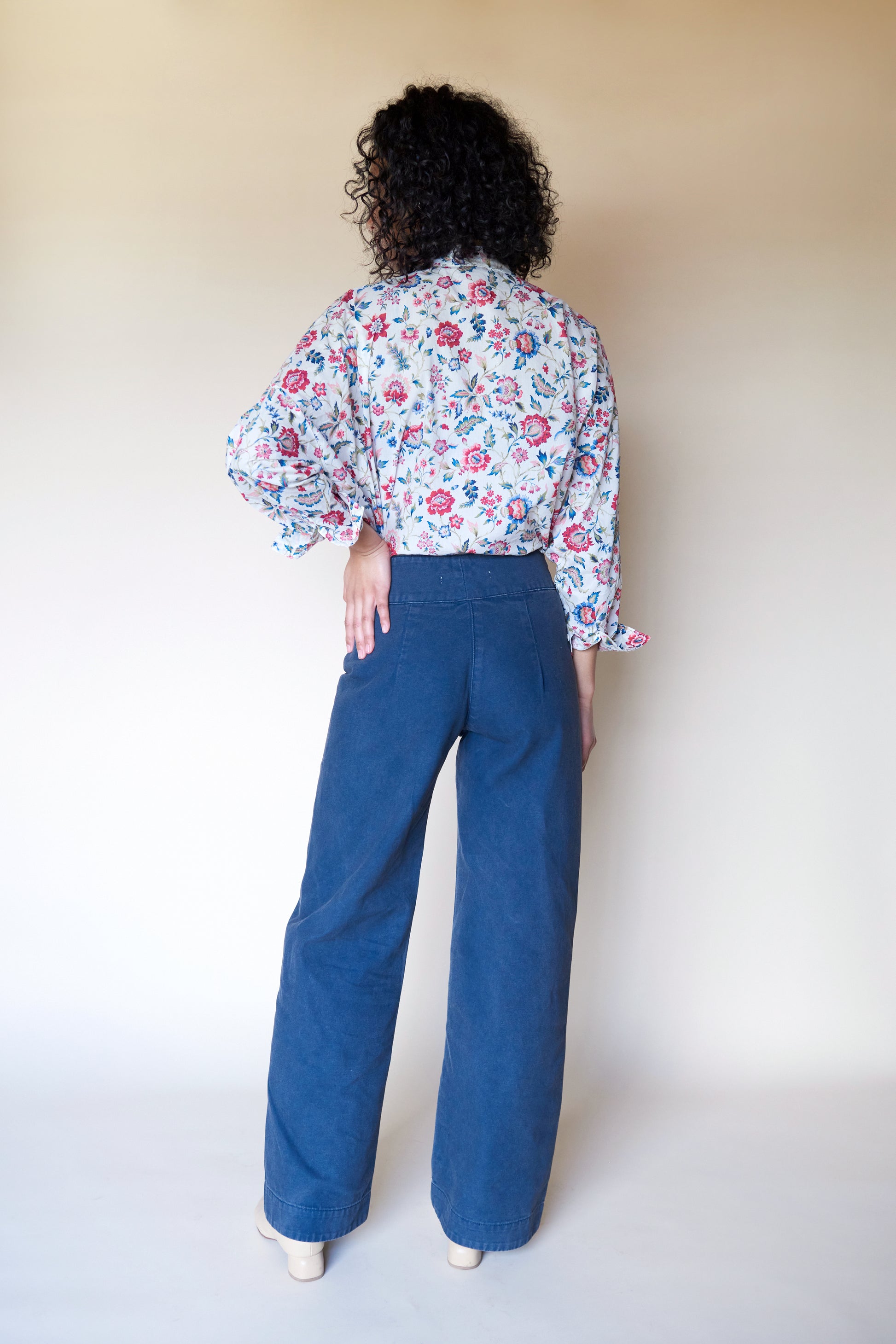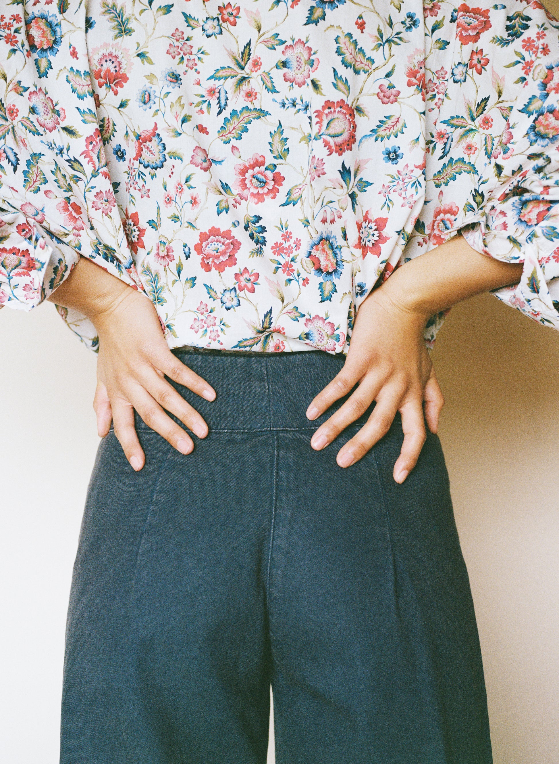 In 100% Organic Cotton Canvas with a subtle acid wash, the Picnic Pant is tried and true. Brought back from the original ER collection in a range of solids, to be worn every day, all year long. Featuring a high waistband with 2 exposed corozo buttons, a hidden button fly, and no side seams. Drawing inspiration from Navy sailor pants, this style looks great with a tucked in blouse, tee, cropped shirt.
