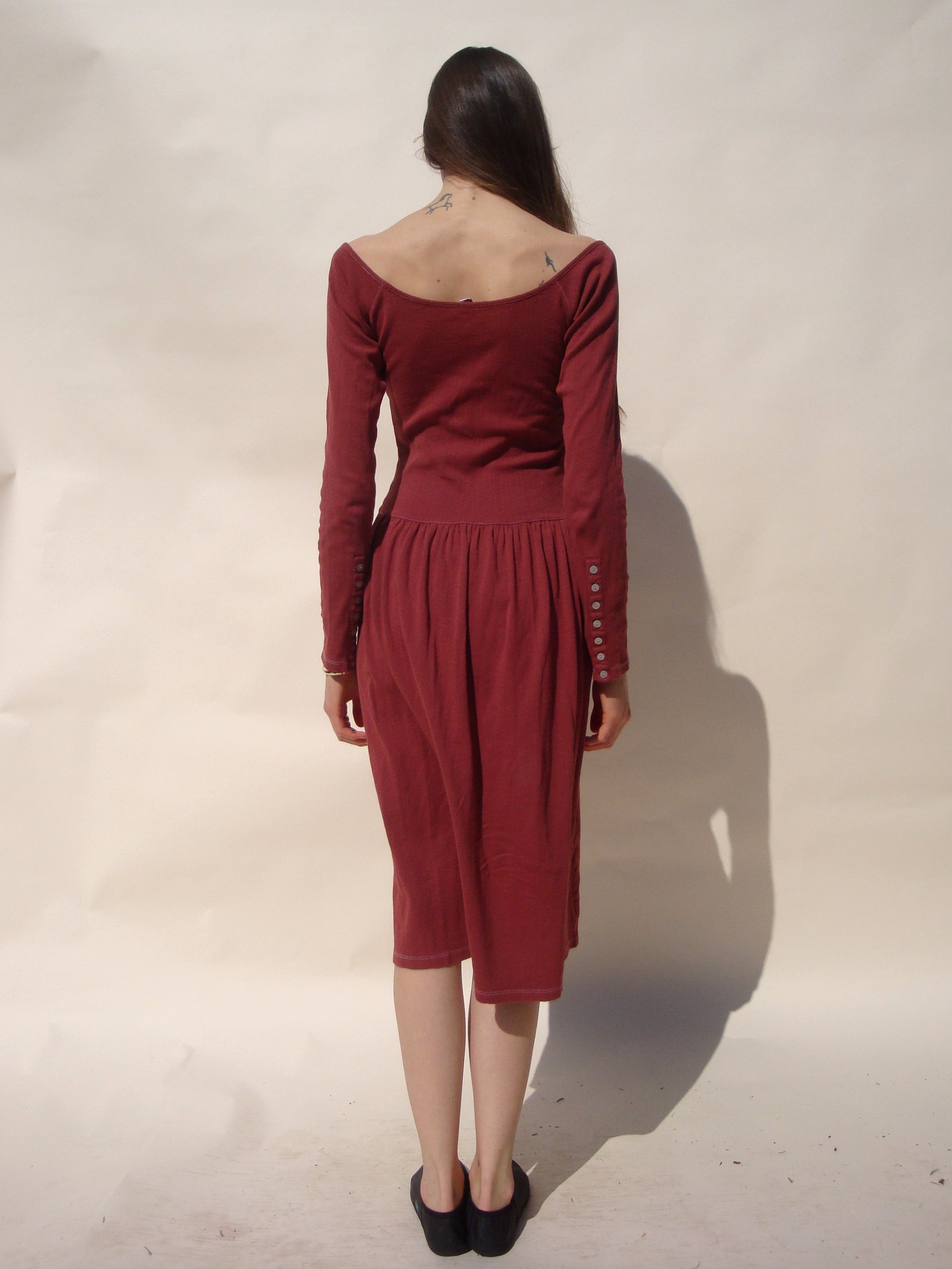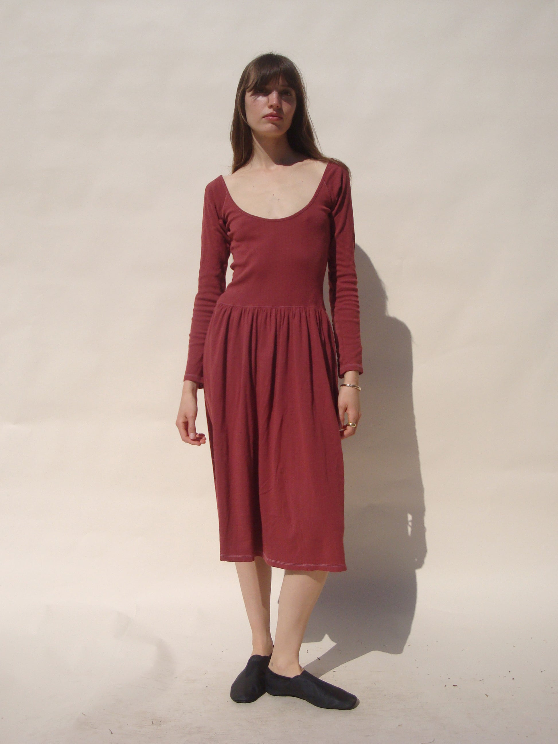 Named for the pioneering dance and theater icon Pina Bausch. The Pina Scoop Neck Dress is made from pretty cotton pointelle fabric in Los Angeles. Featuring an exaggerated shell button sleeve and a scoop neck, this style is a mix of elegance and cozy comfort. This piece can be worn in reverse with the scoop as a low back.