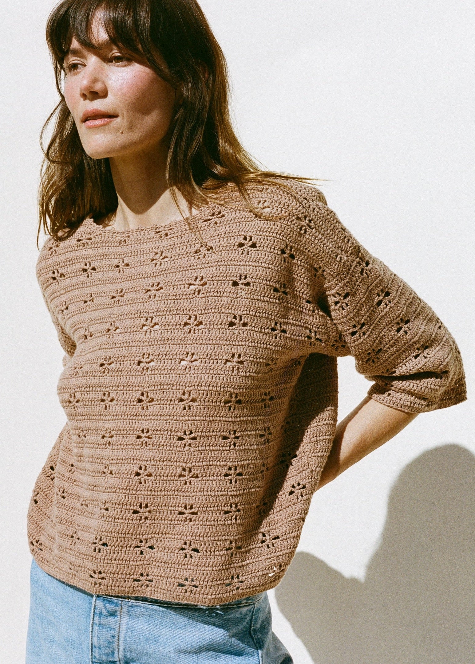 The Port Crochet Tee is an heirloom-inspired take on a classic silhouette. Hand-crocheted with a minimalist floral stitch, the boxy silhouette offers a structured yet easy fit. A timeless piece, made to be worn and passed down.