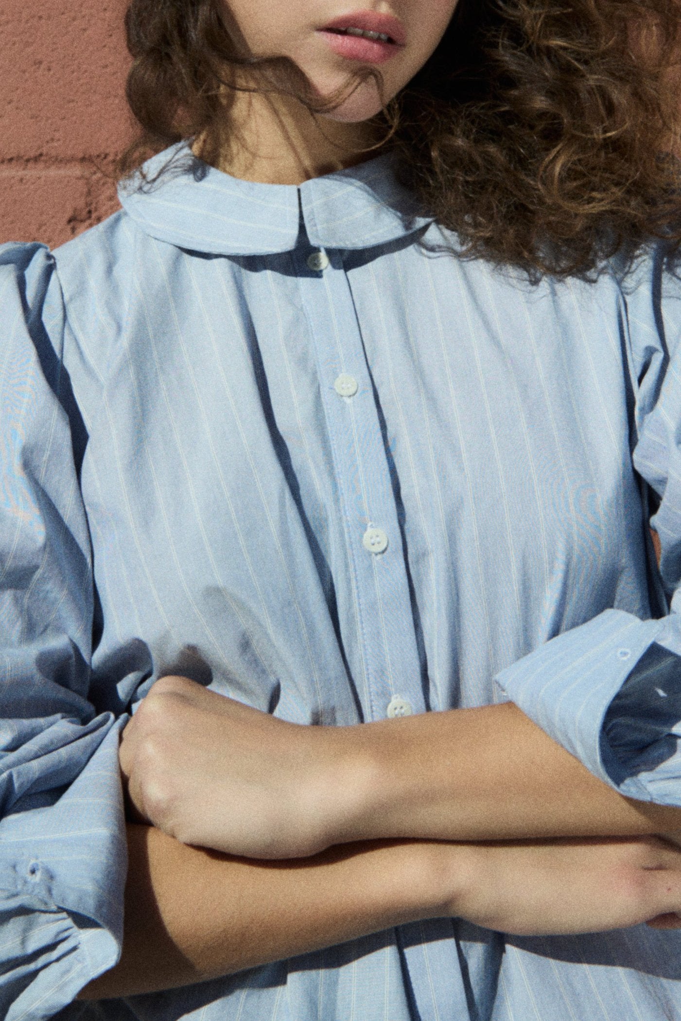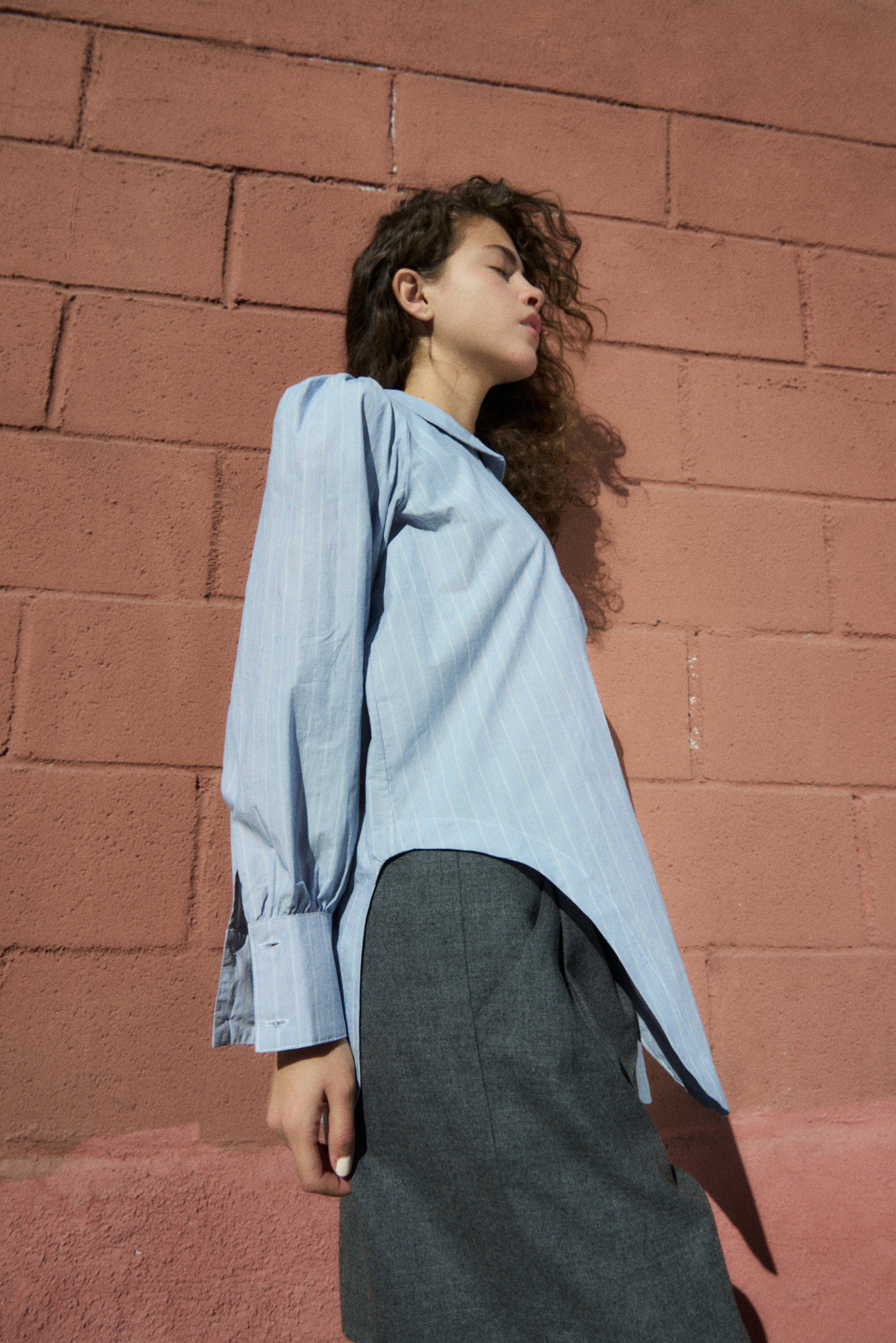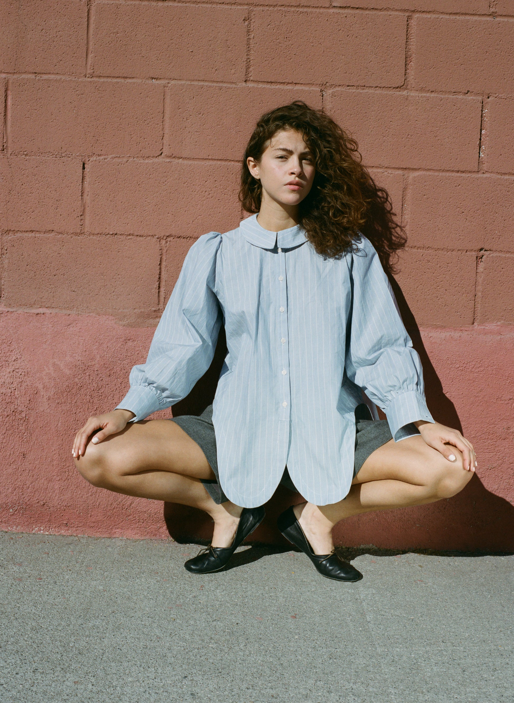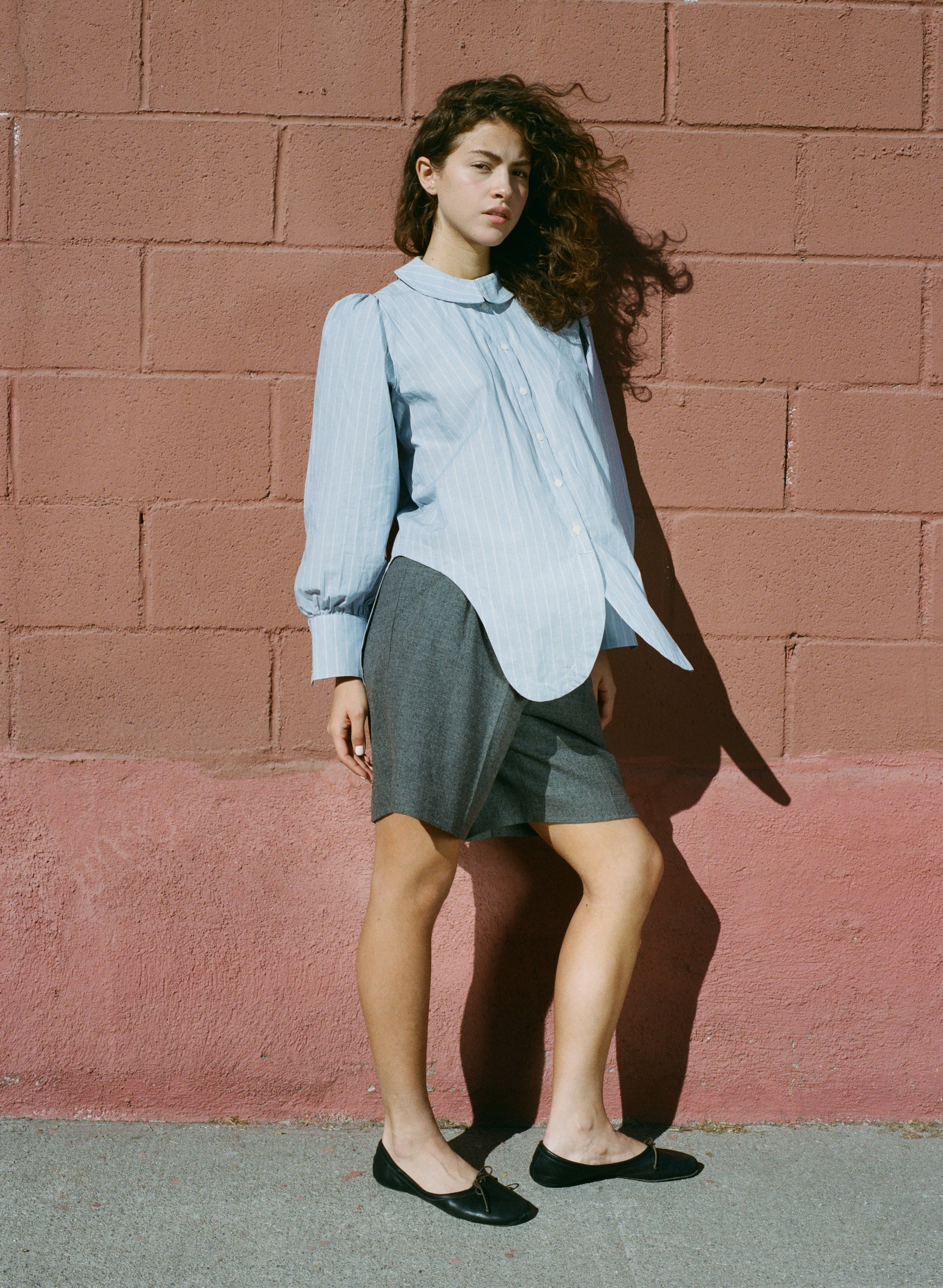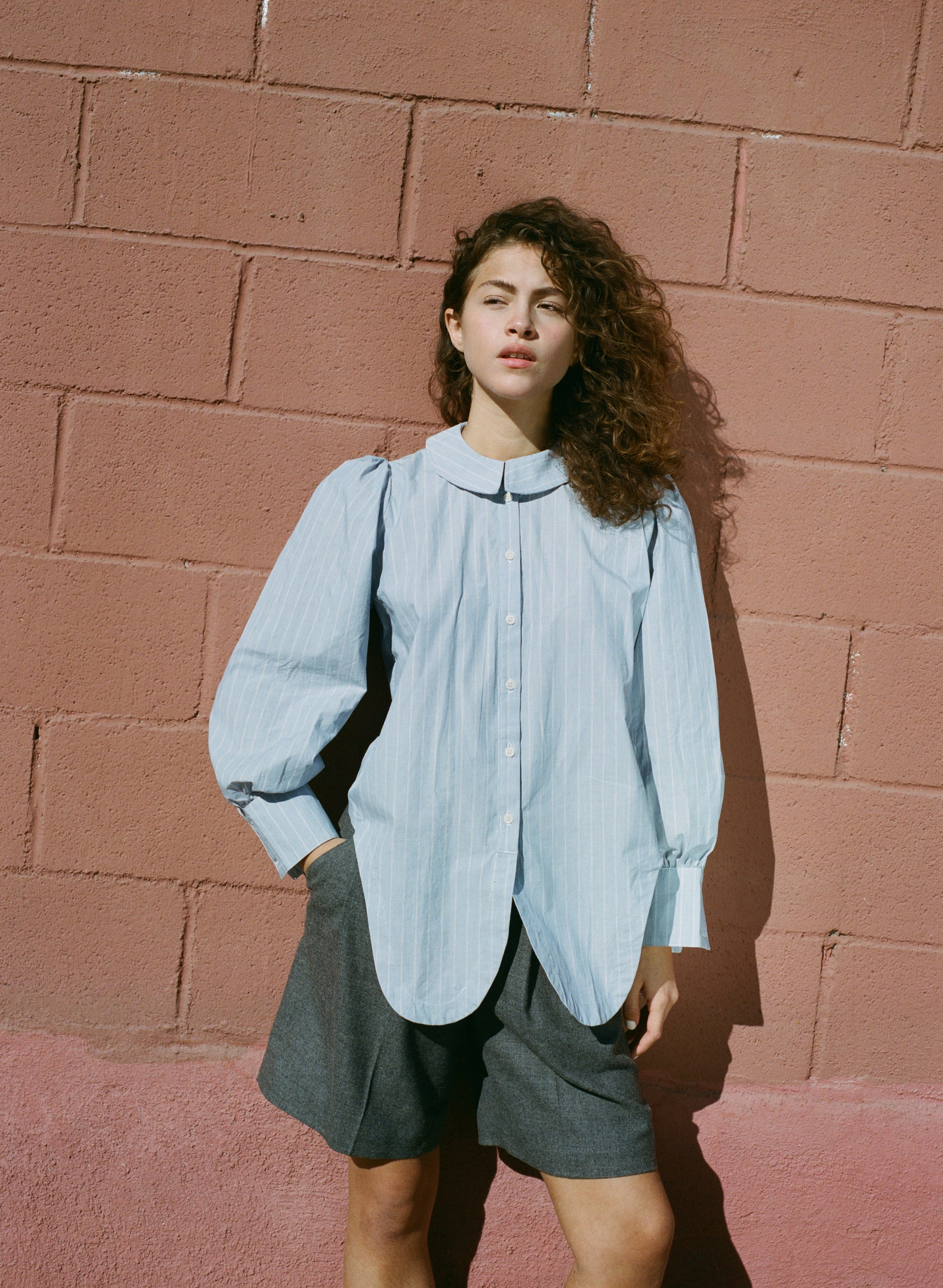 The Rayne Blouse is where sailor meets prairie. Made from a soft, but crisp organic cotton, this shirt will be a workhorse in your closet. The fit of the Rayne Blouse is easy through the body with a long shirt tail in the back and a cut in tuxedo-esque front. Featuring an cuff with 2 buttons, internal french seams, and a front placket with corozo nut buttons.