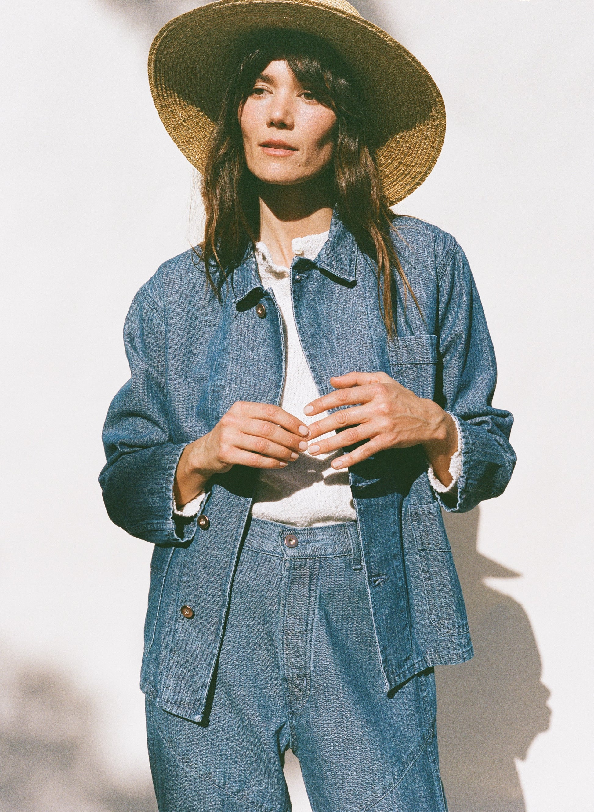 The Rue Jacket is a refined take on classic French workwear, featuring both inner and outer patch pockets for practical storage. The back waistband with pleats adds a feminine twist to this timeless design. Fits true to size for a tailored look; size up for a more relaxed fit.