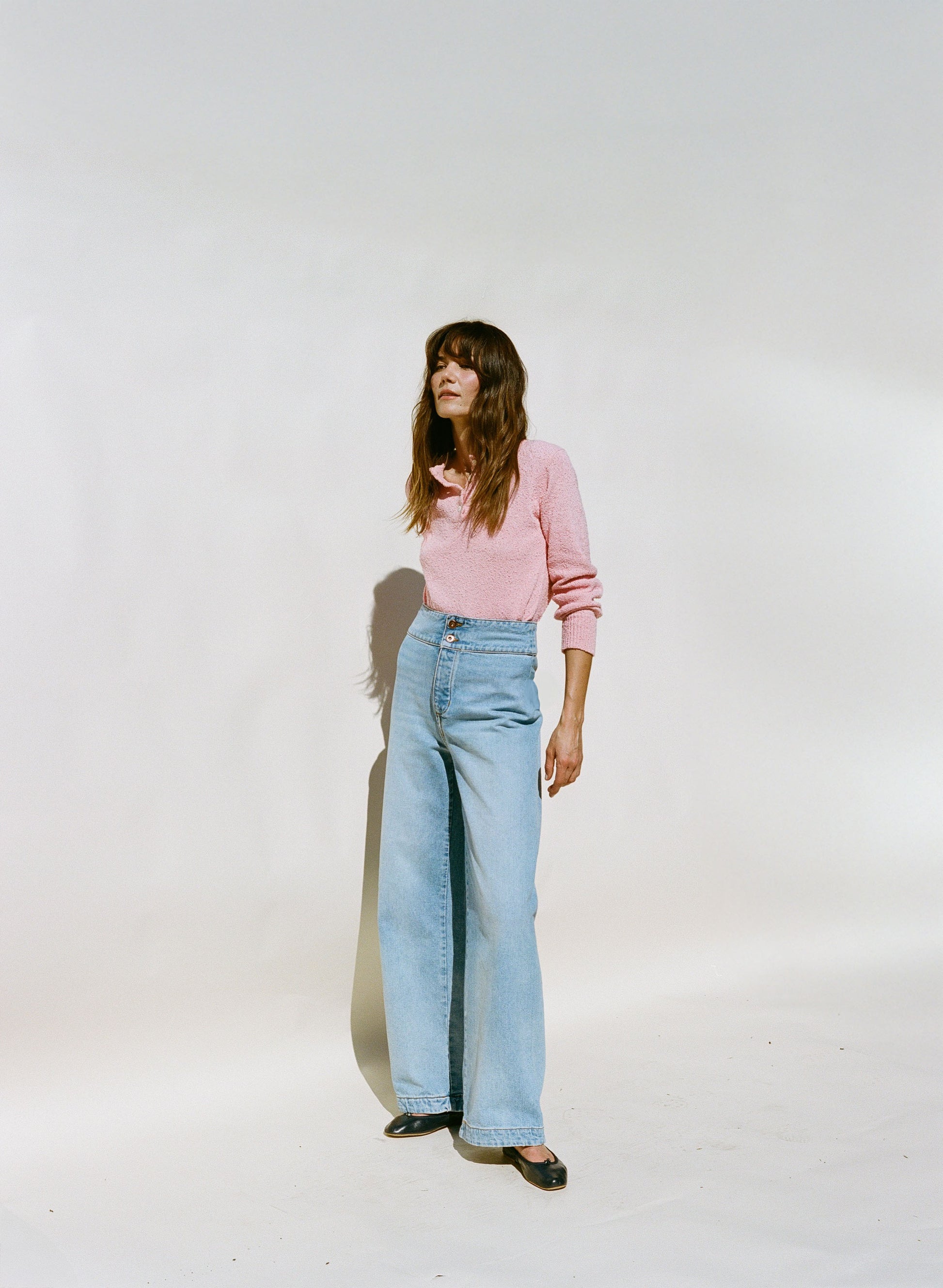 The Ski Henley is Inspired by Emma's mom’s childhood sweater. Reimagined in a nubby organic cotton yarn with 4 horn buttons. Now in a joyful Tulip Pink!