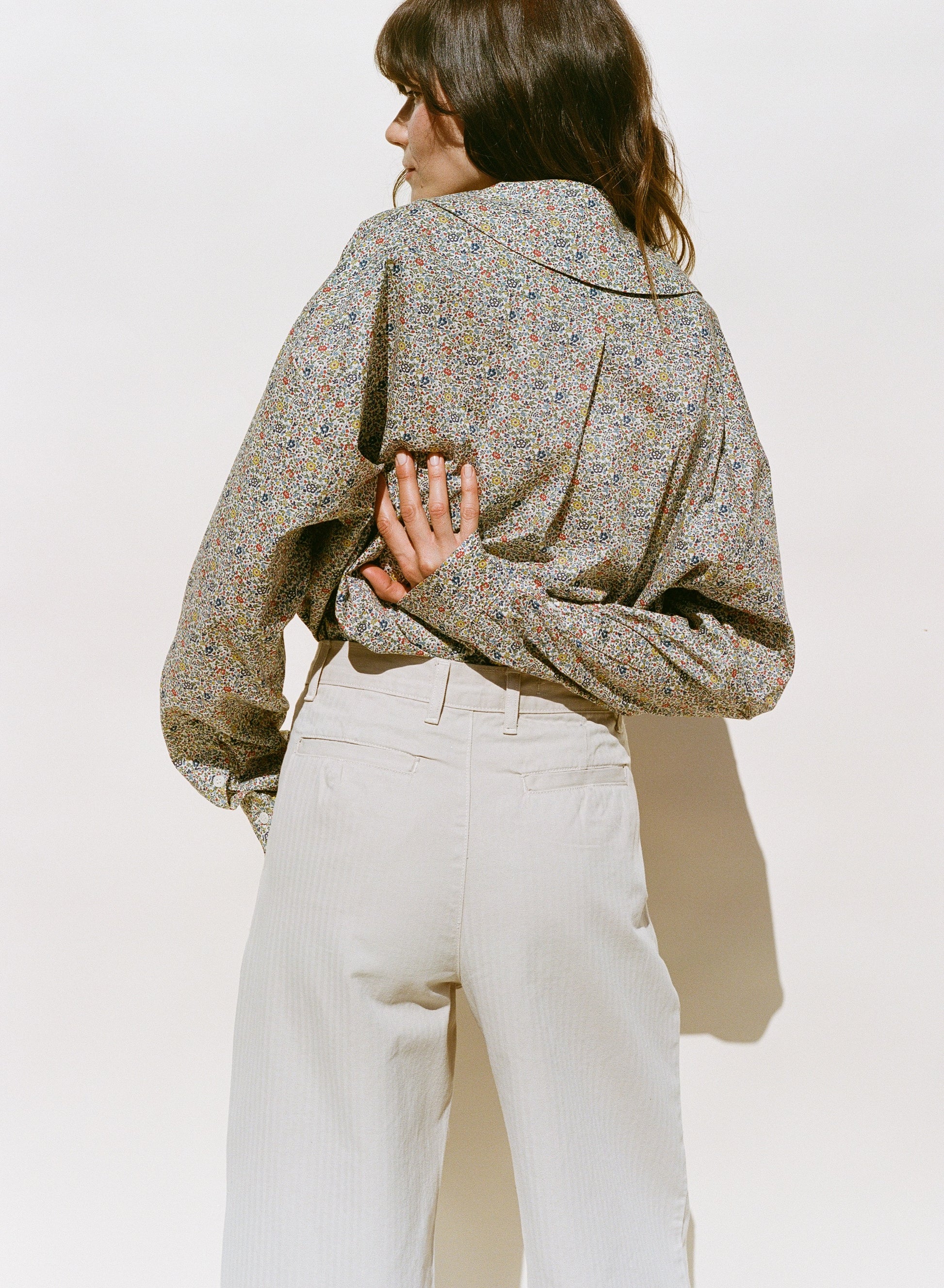 The Tati Trouser is our newest pant style, made from 100% cotton herringbone fabric and garment dyed in LA. It features front pleats, deep side pockets, back welt pockets, and a secure button fly. Available for Spring in Oak - A bright, off-white color.